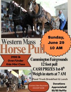 The Cummington Fairgrounds also hosts other events throughout the year. As planning for these upcoming events is complete, we’ll post links and more information here and on our Facebook Page.